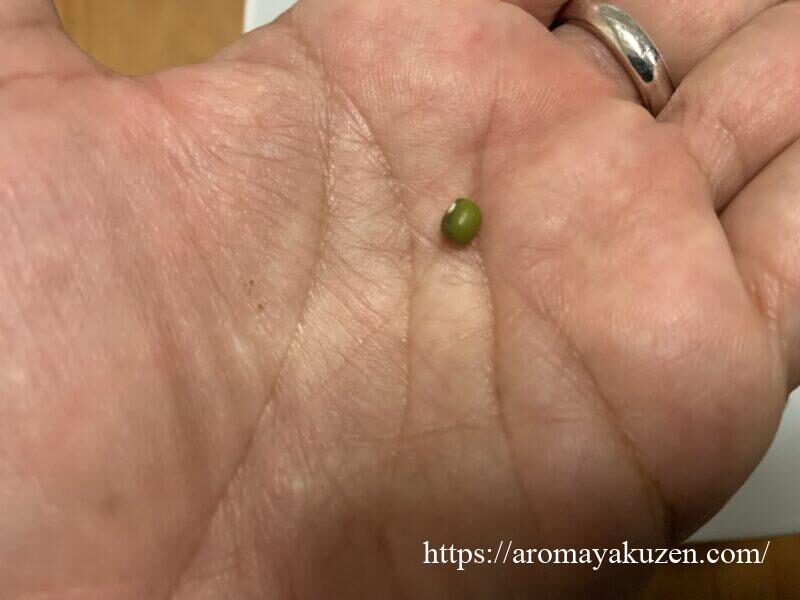 で、何か?というと、もやしの種なんです。下記の写真を見てもらうとわかりますが、小豆や大豆に比べたらかなり小さいです。