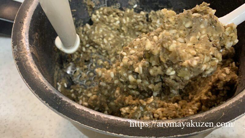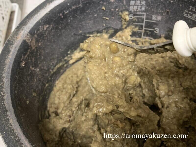 作り方は発酵小豆あんこと変わりません。初めて食べた時は、抹茶のような香りがしました。米麹で醸した独特の甘さが広がり、これで砂糖がはいってないのぉ???という感動がありましたねぇ。