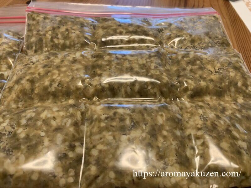 さて、いつでも美味しく食べられるように緑豆あんこは冷凍保存完了です。
