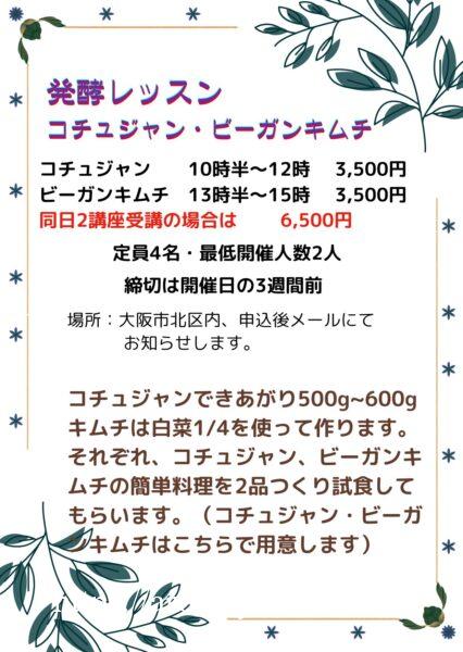 ●コチュジャン・ビーガンキムチ(開催は不定期・毎年12月~3月まではお休みします。)